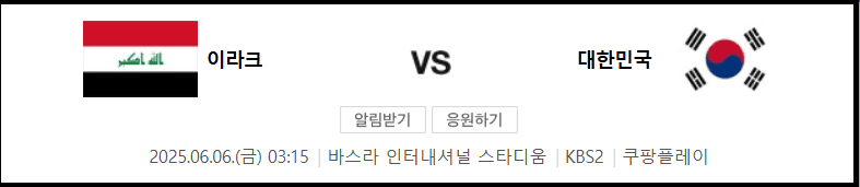 한국 vs 이라크전은 2026 월드컵 본선 진출을 위한 가장 중요한 시험대입니다. 새벽에 열리는 만큼 시청 준비와 응원이 무엇보다 중요합니다. 쿠팡플레이와 KBS2에서 무료로 시청할 수 있으니, 시간 놓치지 말고 태극전사를 함께 응원해 주세요!