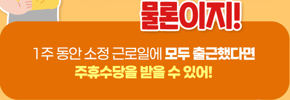 👉 1주일 개근 시, 추가로 하루치 급여인 80,000원을 받을 수 있습니다.