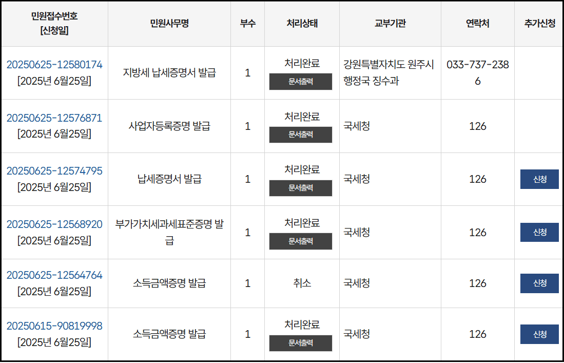 | 지방세 납세증명서 | 정부24 / 주민센터 / 무인발급기 | 지방세 체납 여부 확인용 |